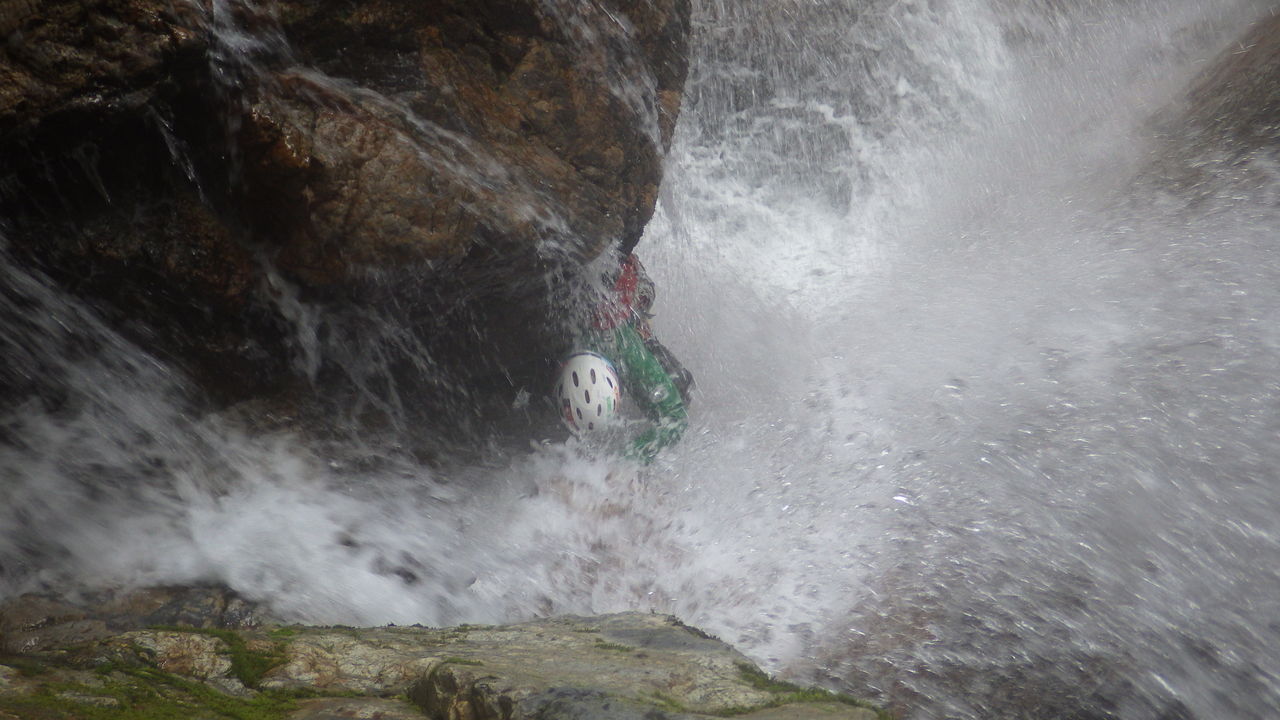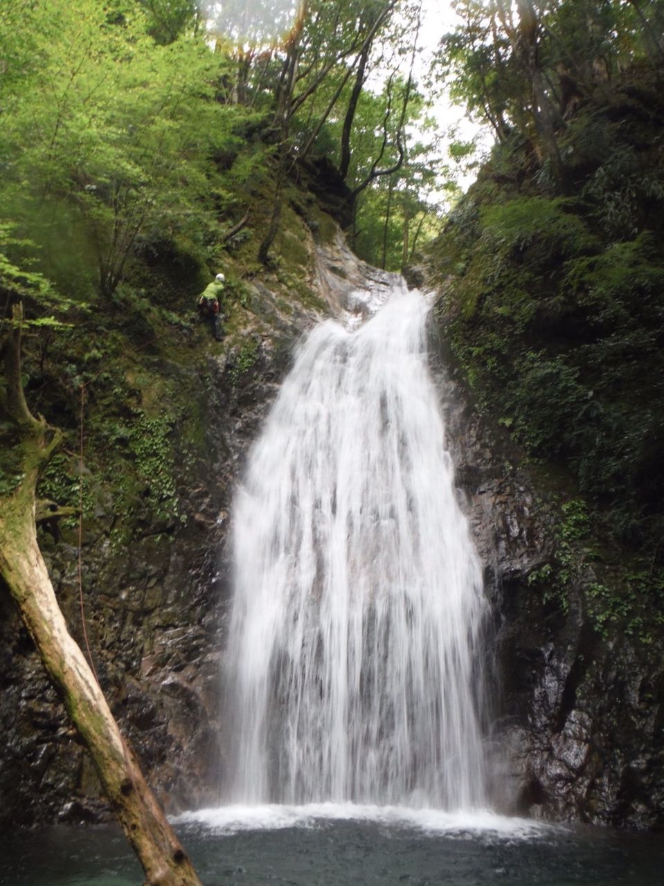 8:50、8m滝はシャワークライミング。水はそれほど冷たく無いのがありがたい!