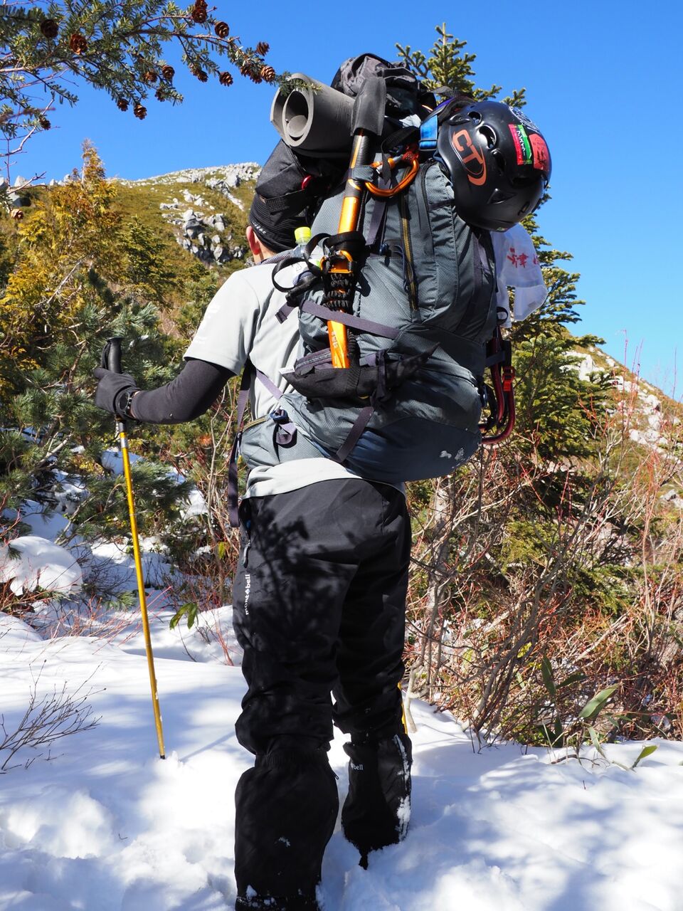 一気に視界が開け嬉しくなるが、同時に驚いたのが見渡してもほとんど雪がなかったこと。とても12月の北アルプスとは思えず、逆に心配になりました。