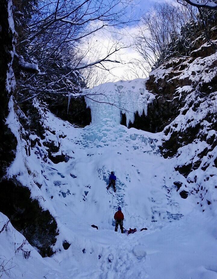 つくし君は大学生で、アイスクライミングは2回目。集会終わりの堡塁岩とクライミングジムでロープ合わせはしたけれど一緒に山に行くのは初めて。