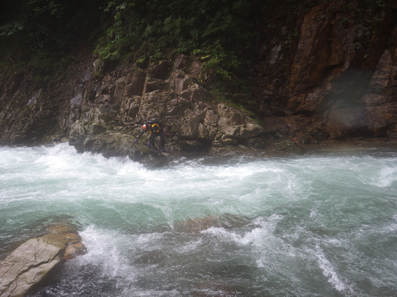 入渓して、昨日より水量は落ち着いていたのでひとまず海ノ溝に向かう。