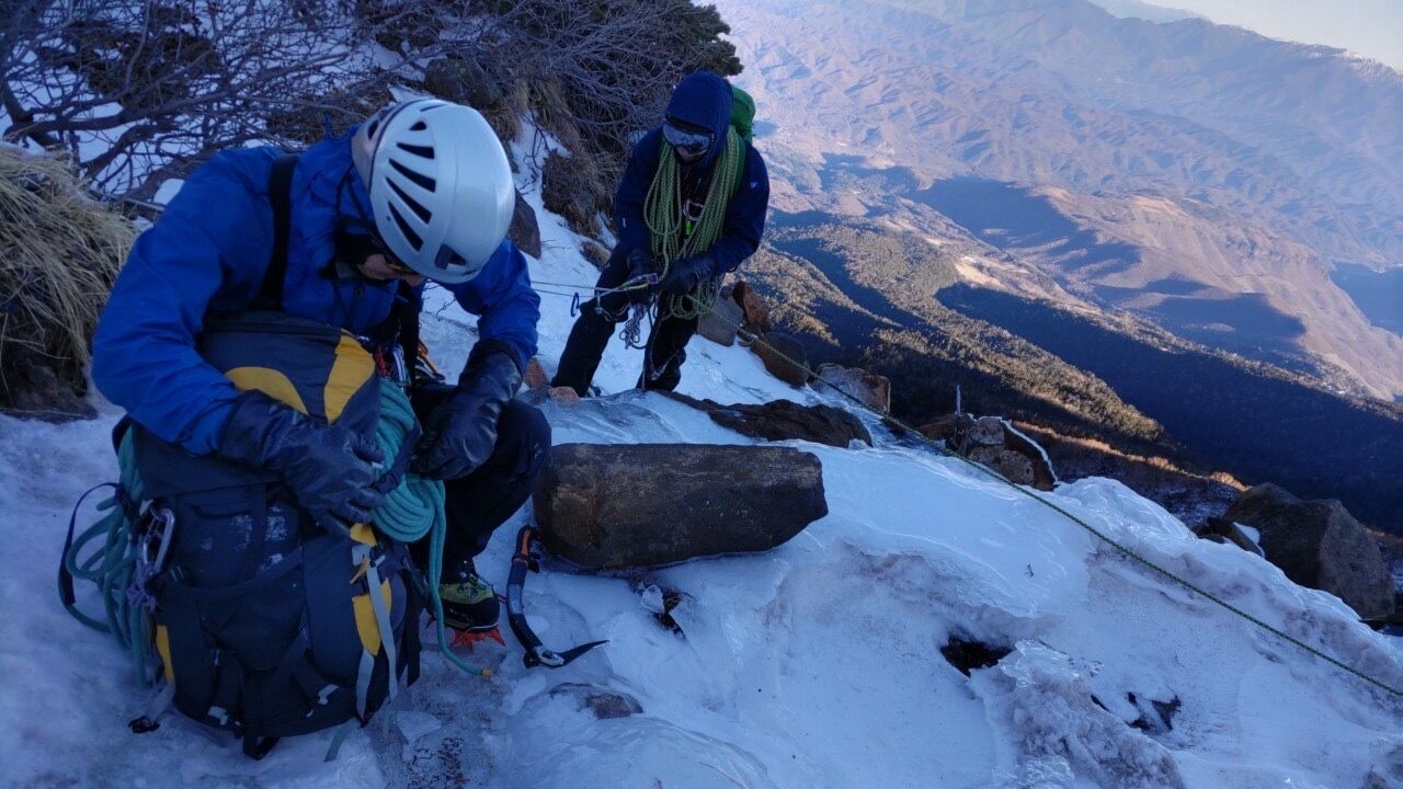 谷川長野ペアは先にトップアウトしていて、落口にて合流。立木の終了点を貸してもらう。