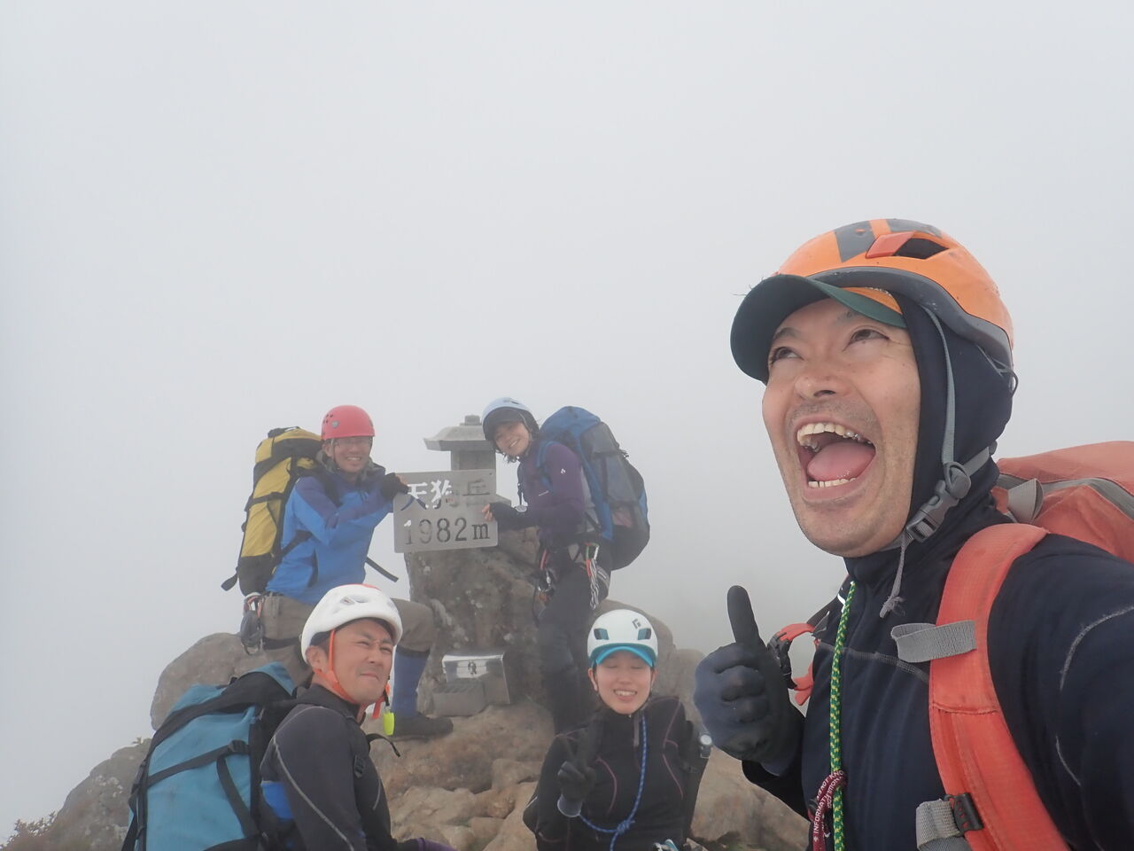 ここら辺から風も強くなってきて、クライミング要素の強い登山道を天狗岳まで進む。