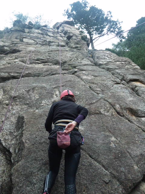 それは、さておき体験者の3名も緊張しながらも登って行くが、3ピッチ目の2Mほどの垂壁はちょっと恐怖だったようですね^-^