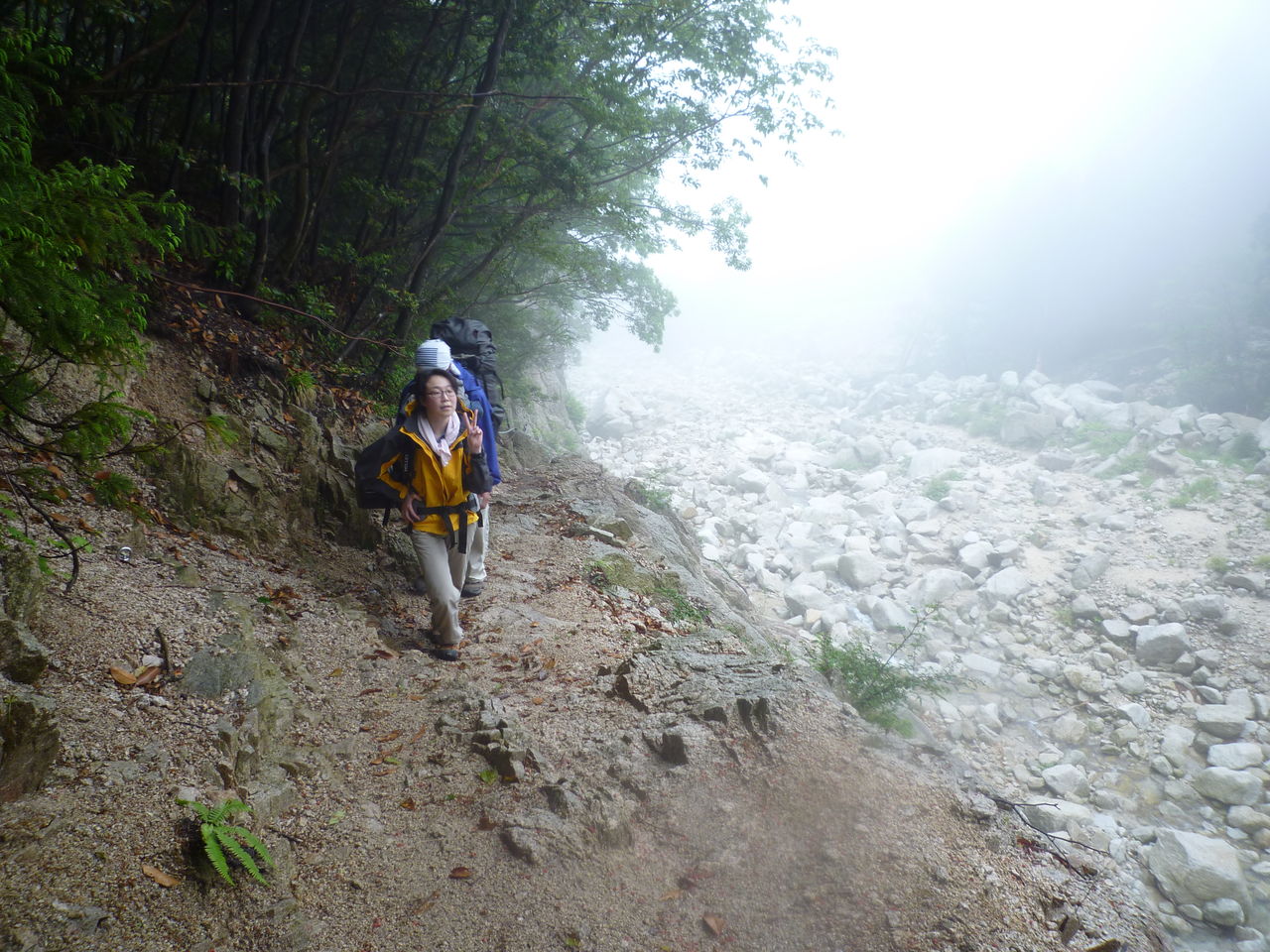 小雨が降る天気の中、最小限に装備を整えアプローチ開始です。