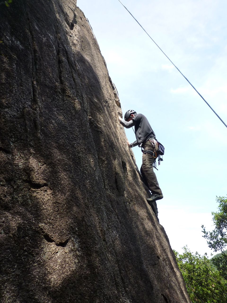 ちょっとしたクラックにちっちゃなカム効かせて、ちょっとでも気持ちを安心させながら登りました。